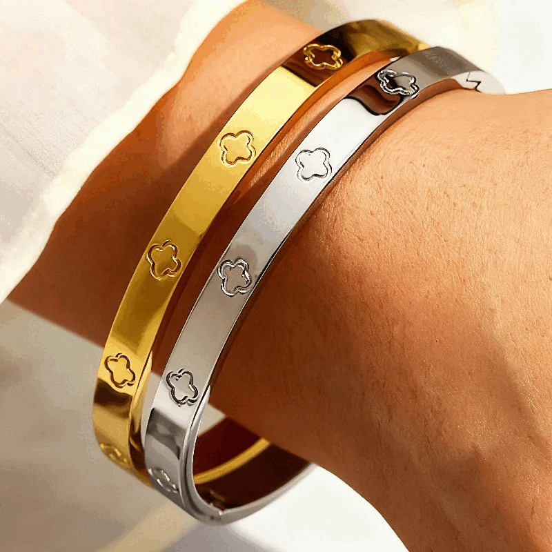 Elegant four-leaf flower details with zircon sparkle make it perfect for stacking, gifting, or elevating everyday outfits.